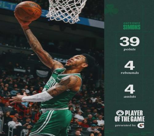 西蒙斯7记三分轰赛季新高39分凯尔特人19分逆转热火