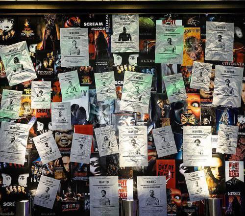 墙壁上挂满了诸如《惊声尖叫》和《乌鸦》这样的经典恐怖片海报