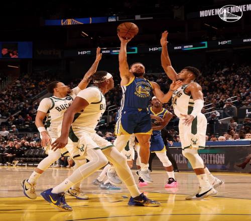 勇士队的库里上半场得到14分和4次助攻,梅尔顿得到11分,穆迪和普斯特各得到9分;雄鹿队的字母哥得到18分和4个篮板,波特得到11分。