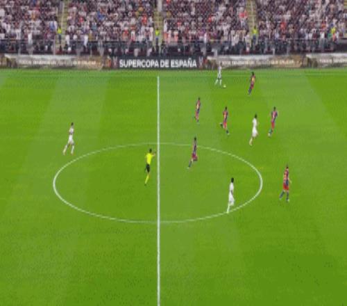 他在中圈附近接球后,一路带球狂奔逾40米,连过多名巴萨防守球员,如利剑般直插禁区腹地,冷静推射破门,将比分扳为1比1!这粒进球不仅点燃了伯纳乌球迷的希望,更堪称个人能力的极致展现。